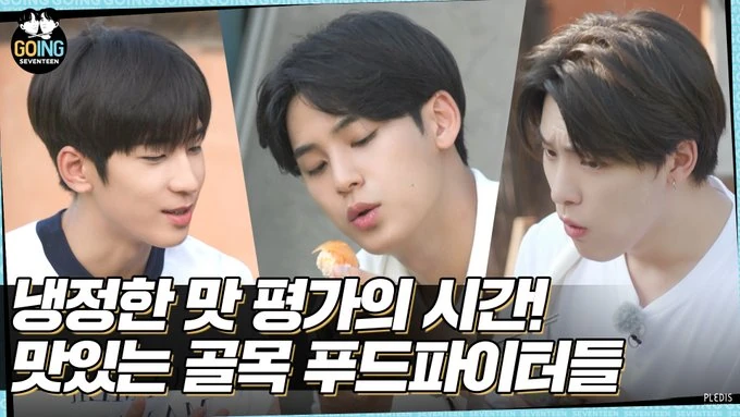 Dk, Mingyu, The8 and Dino go on the streets of Seongsu-dong for the third travel package from Tour SEV SEV, the To Eat or Not To Eat tour. The members use a method of random picks with their eyes closed to visit restaurants and shops, pick their meals, and decide payments - all at random. They also do a couple of GOING SEVENTEEN interviews with fans.