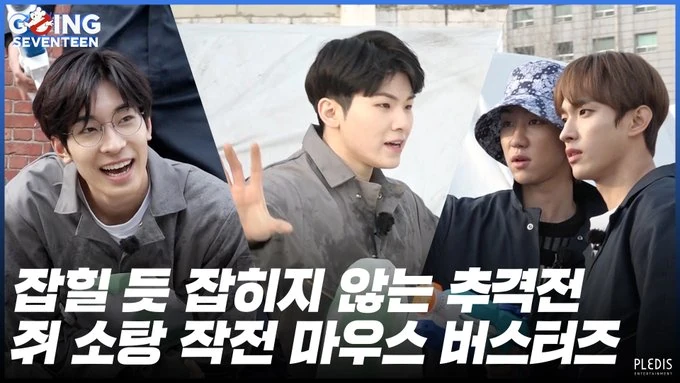SEVENTEEN arrives in a rented out town in Yangpyeong, Gyeonggi for their own version of "Family Outing", the third installment of Seungkwan's series of “entertainment shows of bygone times”. In a pre-recorded video message Jun and The8, who are both absent, give the other members their tasks - the first one being to pick strawberries. Using a game, they're divided into three teams and compete with each other in a strawberry picking game. Team Dino (Mingyu, S.COUPS and Dino) comes first and wins time to rest, while Team Joshua (Joshua, DK and Vernon) is assigned to prepare dinner and Team Woozi (Wonwoo, Woozi, Hoshi and Jeonghan) is assigned shopping.